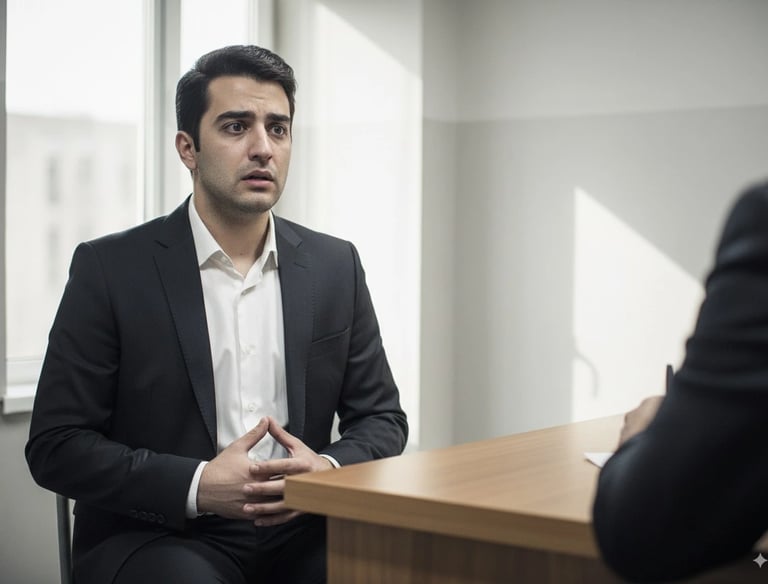 A cold and disconnected interview atmosphere made him tense. The interviewer asked difficult questions without eye contact.