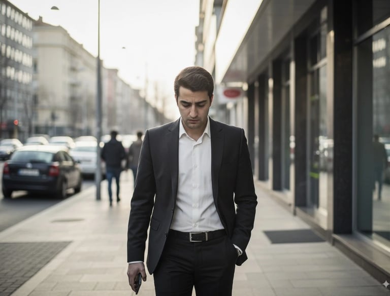 He walked out drained, avoided messages, and wandered the city with no direction.